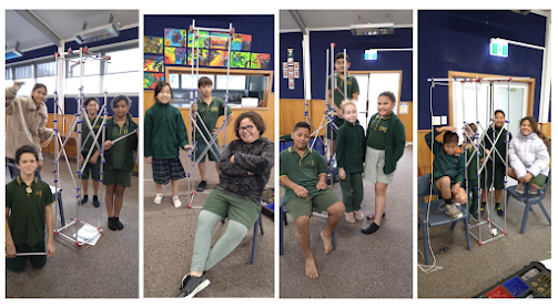 So much excitement having 6 more kits for us to use. These kits are like massive lego or mechano building kits - they have aluminium pipes, joiners and screws. In small groups we followed a plan to construct a pulley system that had to be at least 1.6m tall. Some even managed to get their pulleys working! Huge effort to think, collaborate, co-operate and build a design.